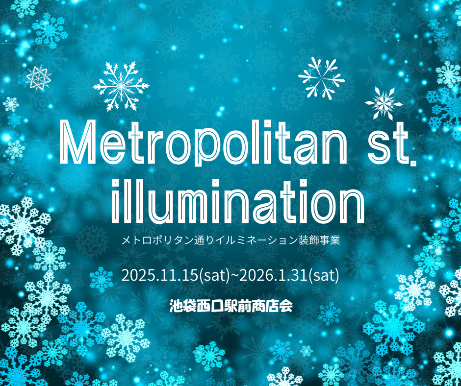 池袋西口駅前商店会は「メトロポリタン通りイルミネーション装飾」を実施いたします。詳細は下記をご覧ください